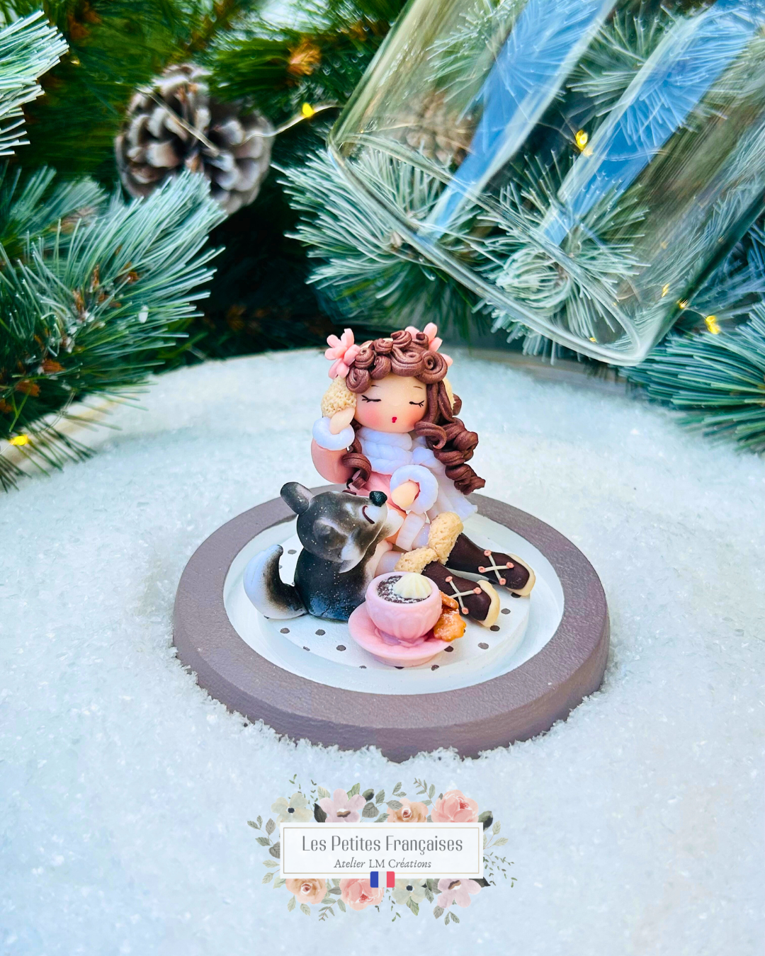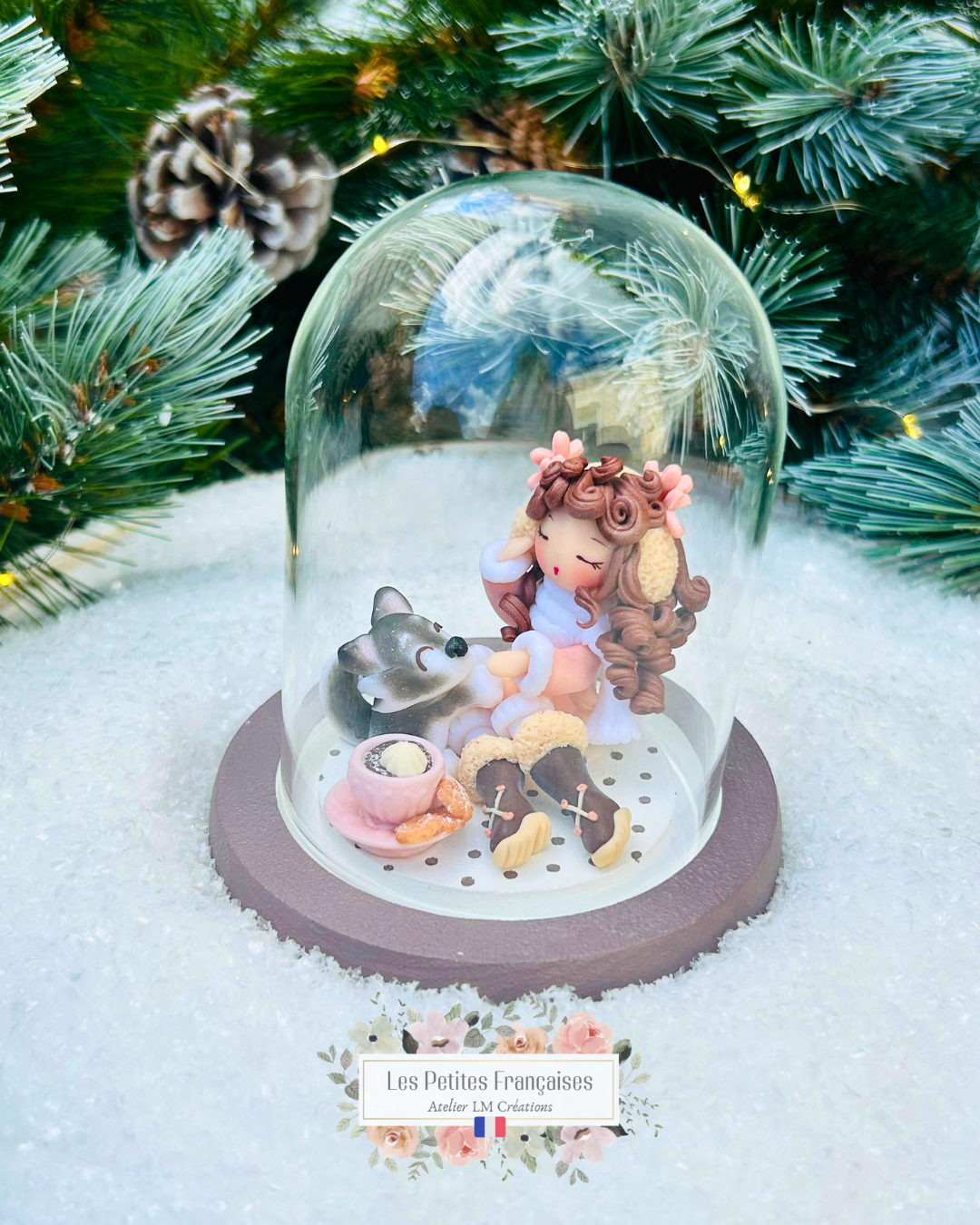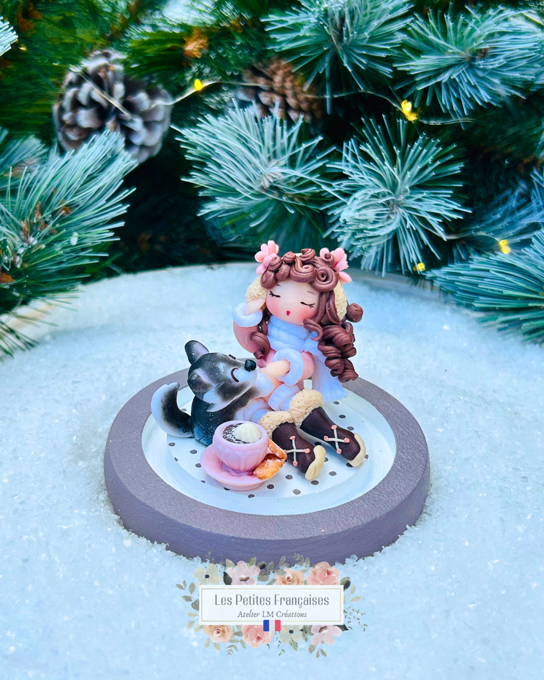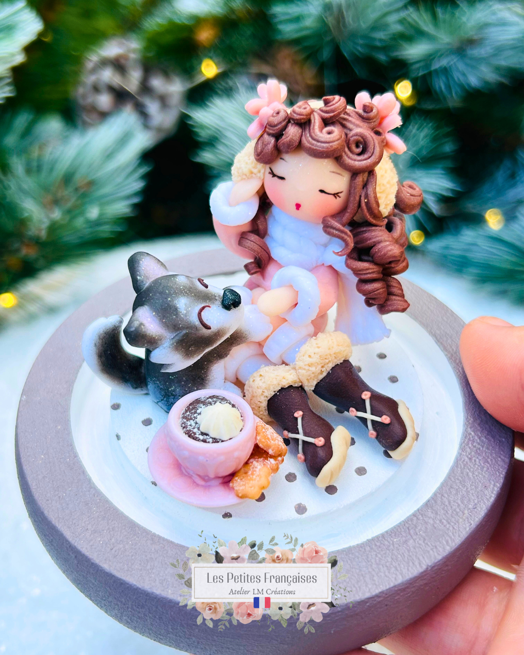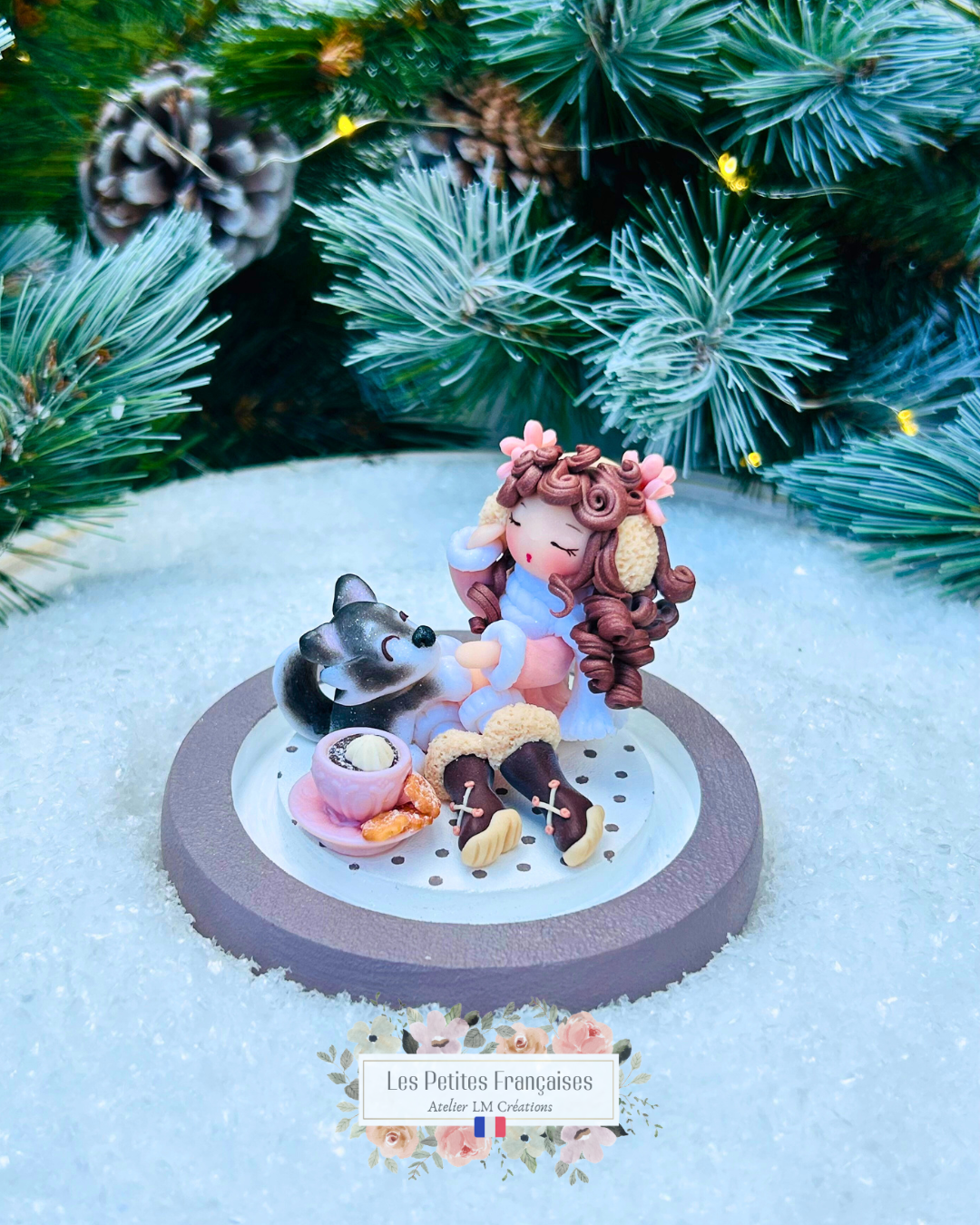 Création artisanale Française, pièce de collection unique, délicate poupée et son husky. A offrir ou collectionner.