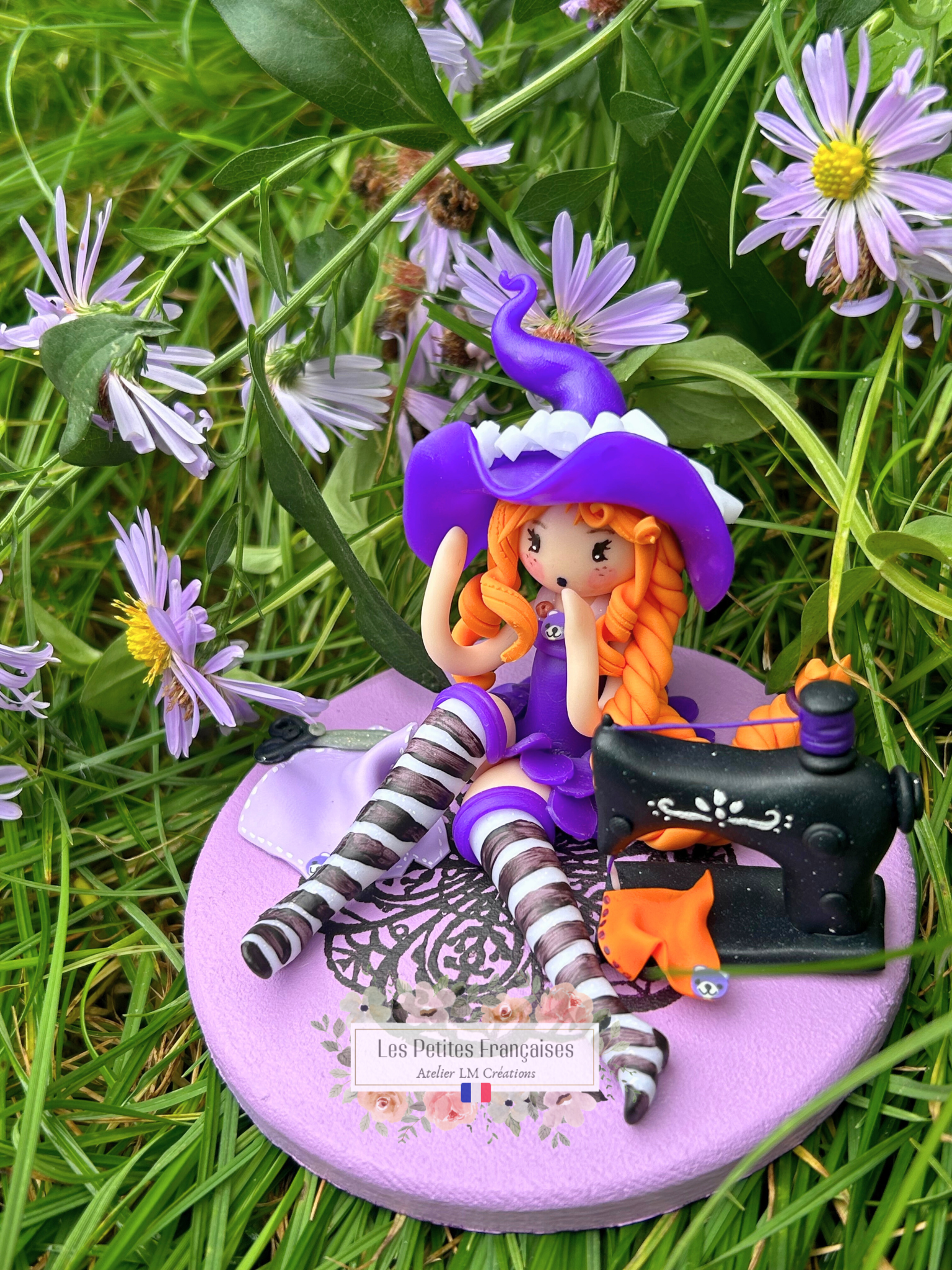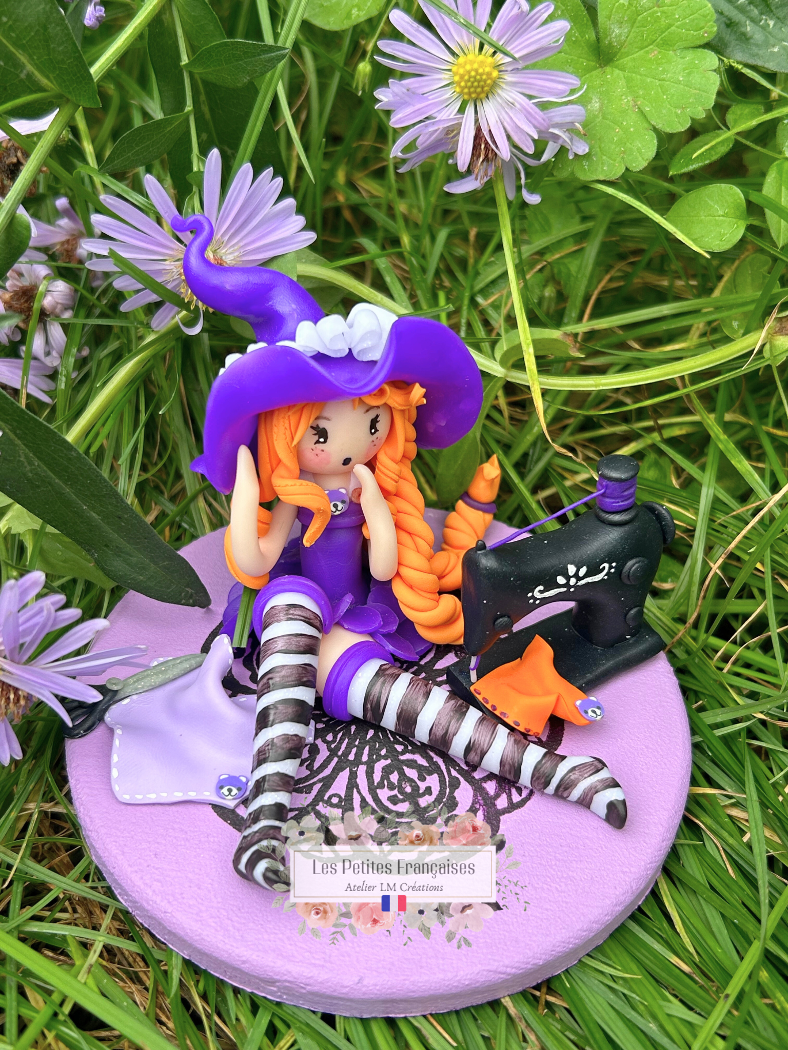 Caroline est une création délicate, façonnée entièrement à la main, représentant une sorcière couturière. Avec ses cheveux flamboyants, sa tenue colorée et ses accessoires de couture miniatures, elle incarne la magie de la création, la passion des détails et l’élégance des petits gestes minutieux.