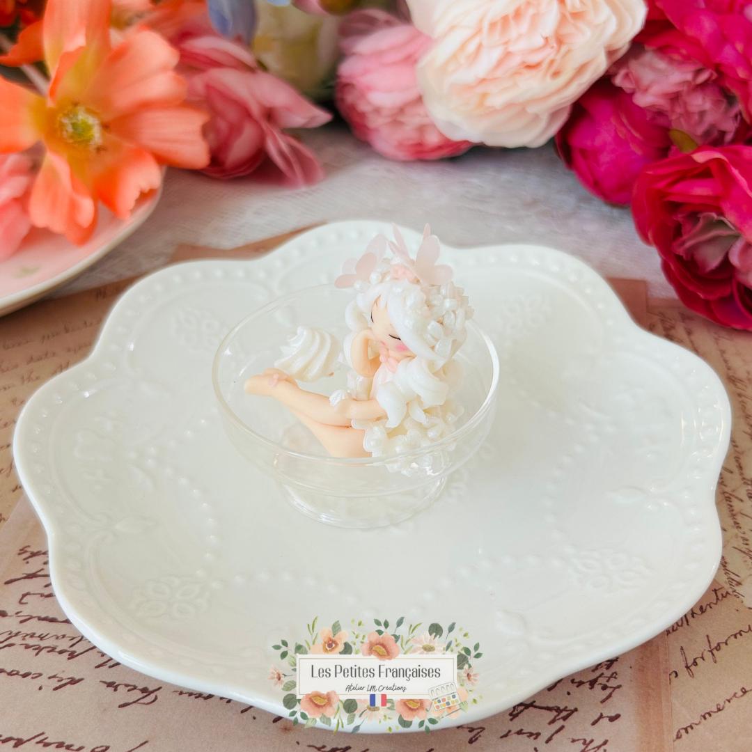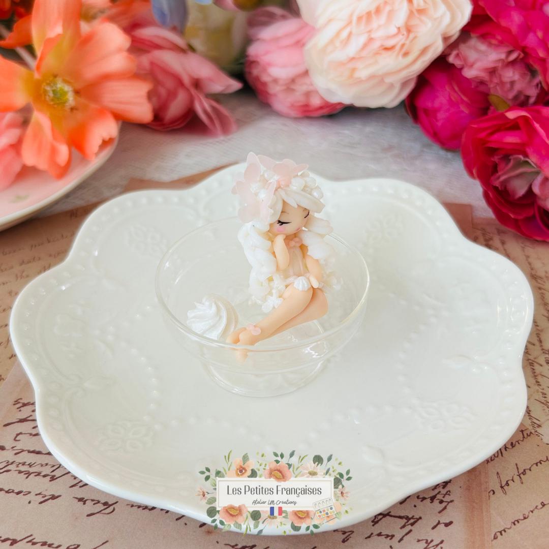 Clémence est une pièce inspirée par la meringue française. Avec sa robe blanche, ses joues rosées et sa senteur vanillée, elle transforme chaque recoin en pâtisserie enchantée. Elle appartient à la collection Les Gourmandises, une série de figurines miniatures inspirées des douceurs françaises.