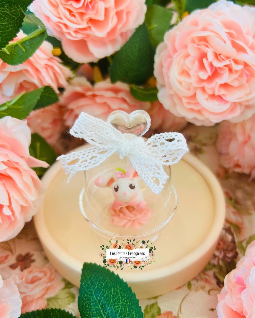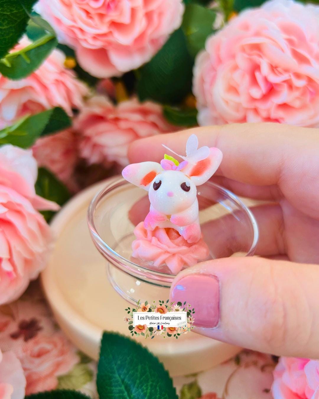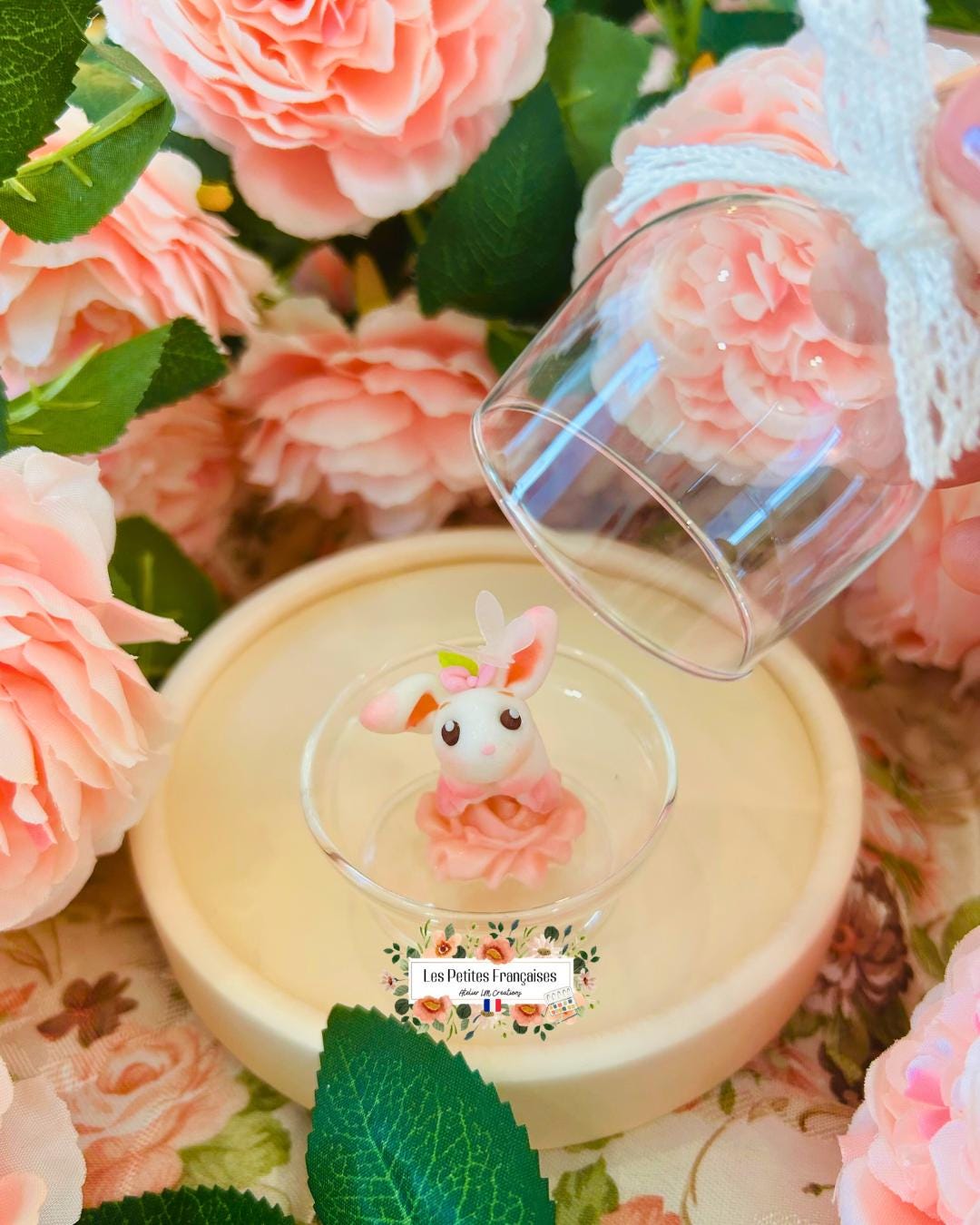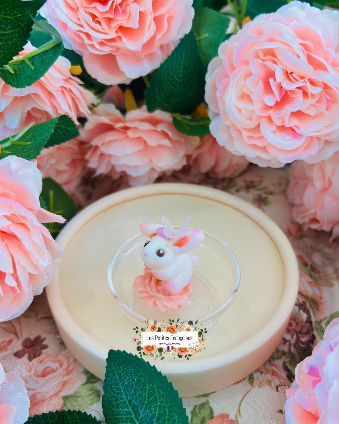 Création artisanale Française, pièce de collection unique, lapin blanc avec sa rose. Touche florale et décorative à offrir ou collectionner.