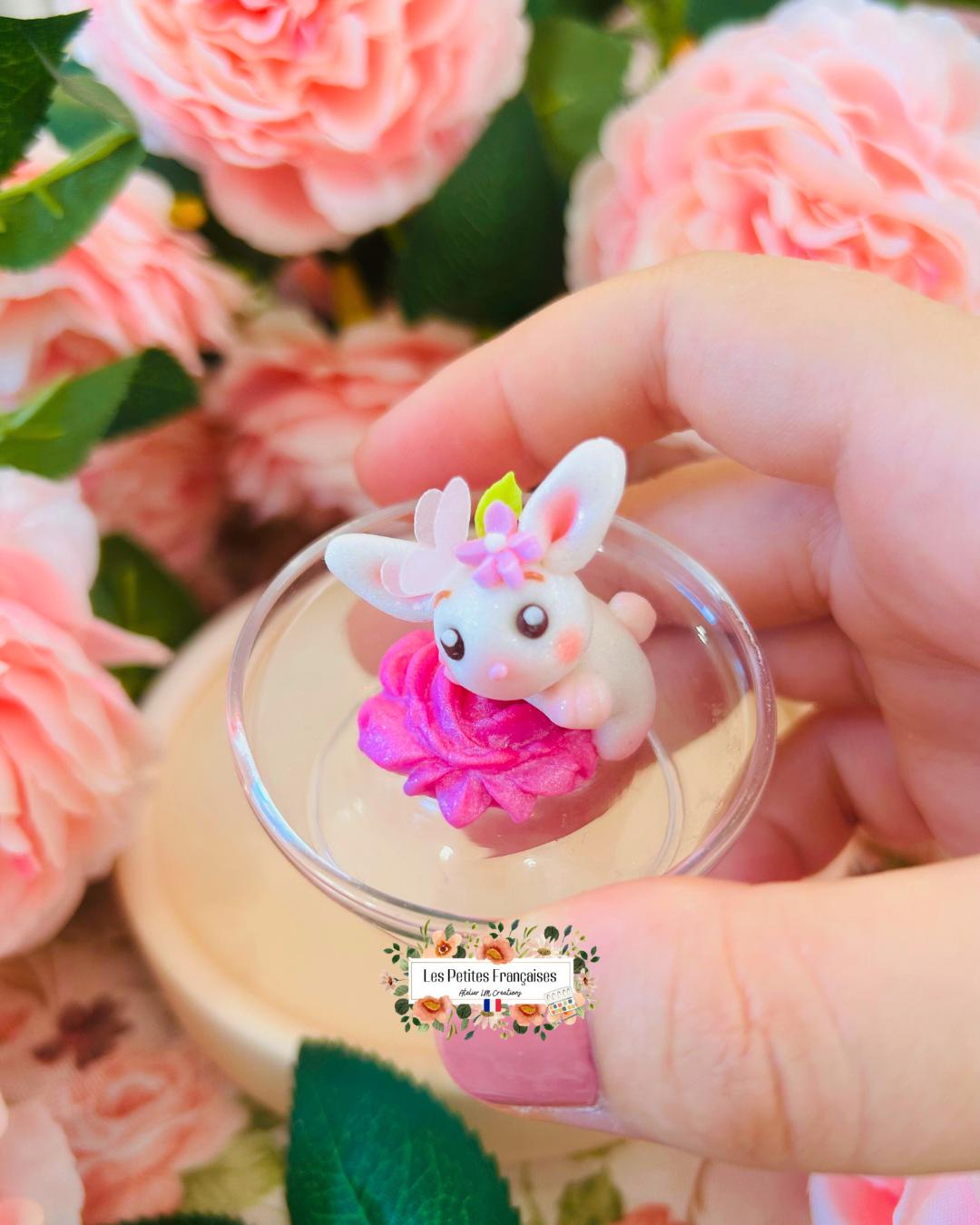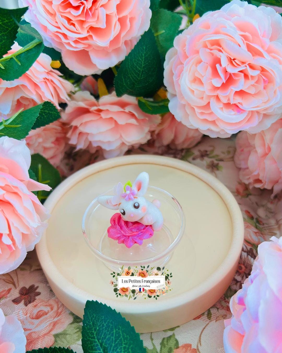 Création artisanale Française, pièce de collection unique, lapin blanc avec sa rose. Touche florale et décorative à offrir ou collectionner.