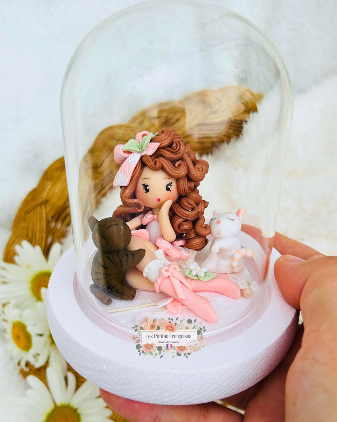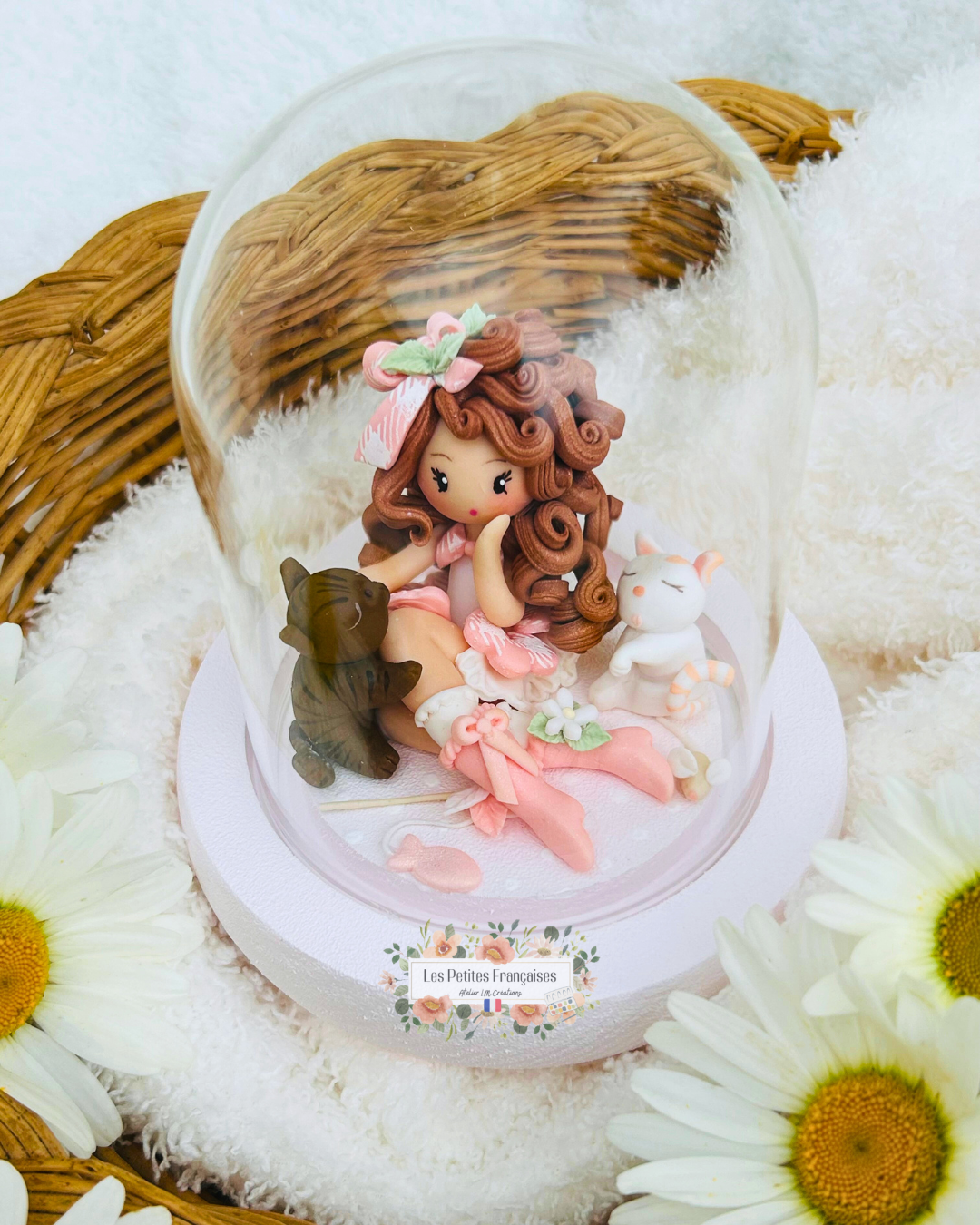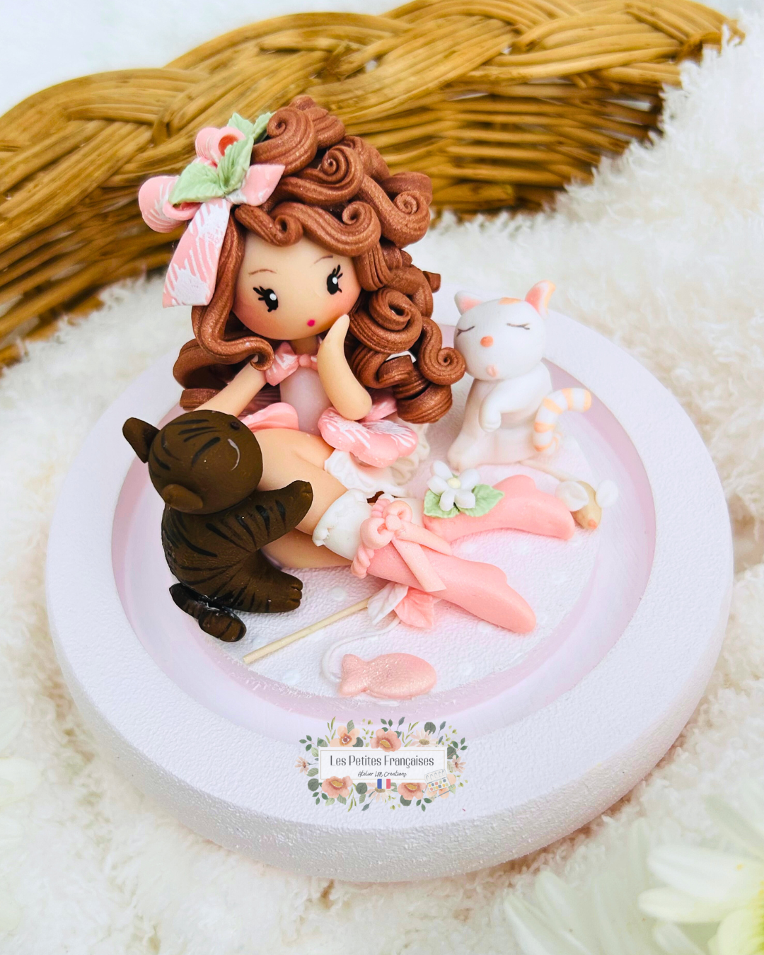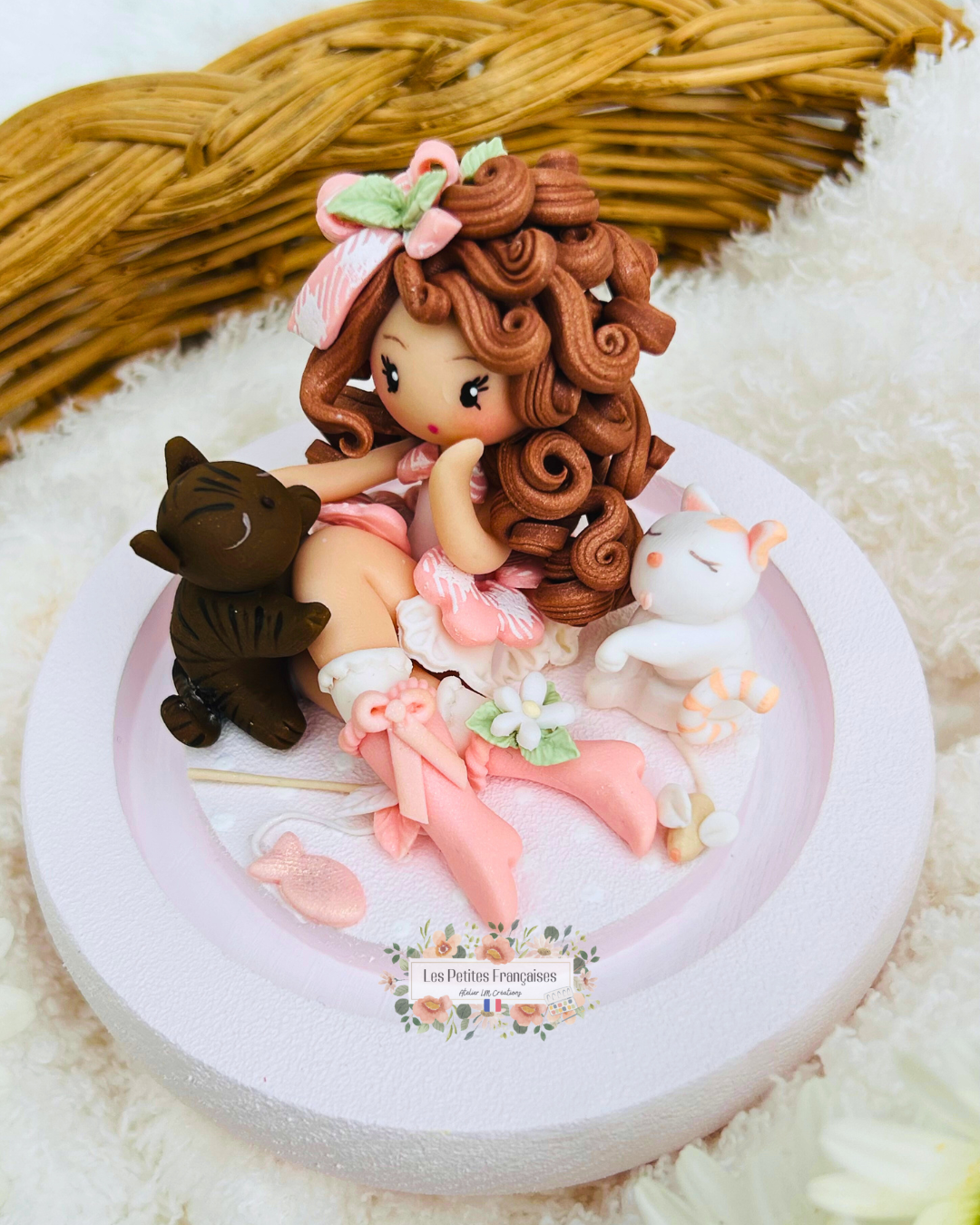 Création artisanale Française, pièce de collection unique, délicate poupée avec ses chats. A offrir ou collectionner.