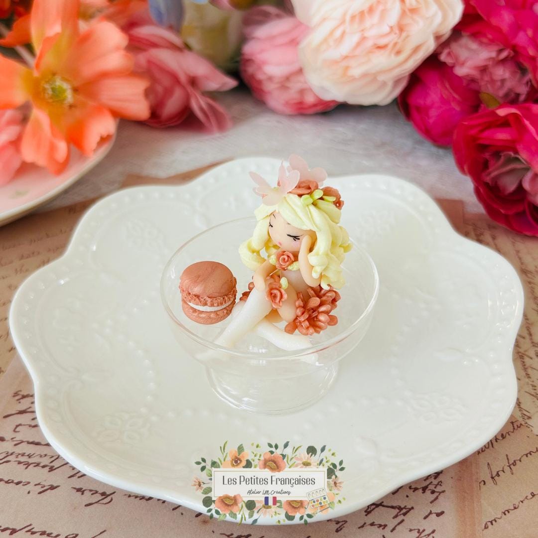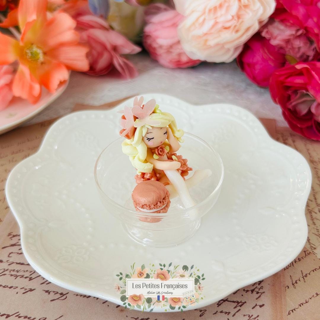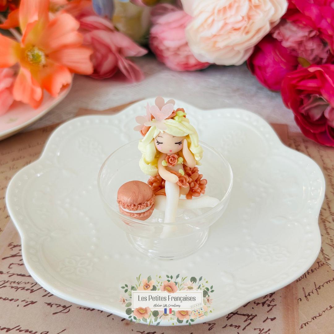 Éloïse est une pièce de décoration, inspirée du macaron français. Sa robe rose poudré, ses détails délicats et son parfum raffiné en font une figurine sensorielle à part entière. Elle fait partie de la collection Les Gourmandises, une série de miniatures inspirées des douceurs sucrées françaises.