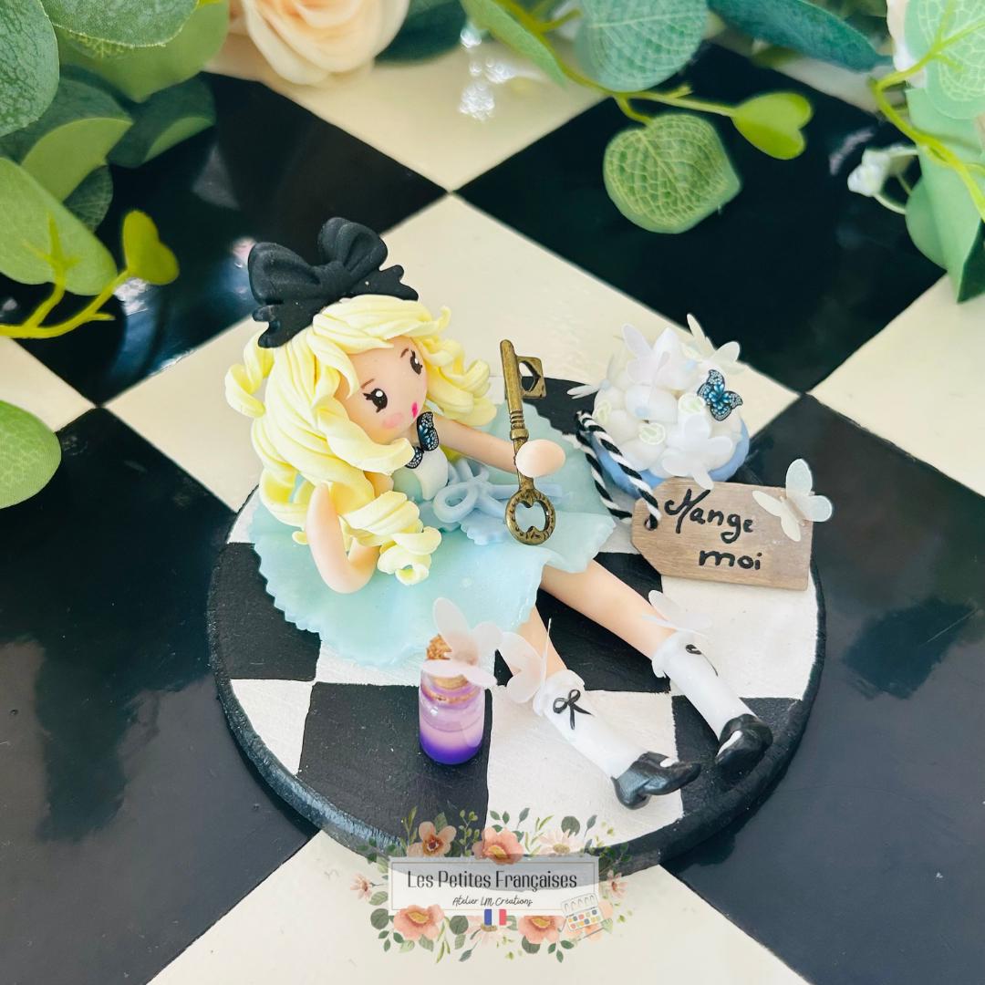 Inspirée du célèbre conte de Lewis Carroll, cette figurine miniature incarne l’univers poétique et décalé du Pays des Merveilles. Cheveux blonds bouclés, robe bleu ciel et nœud noir, Alice est entourée de ses objets fétiches : une clé dorée, un flacon magique, un gâteau mystérieux et une étiquette “Mange moi”.