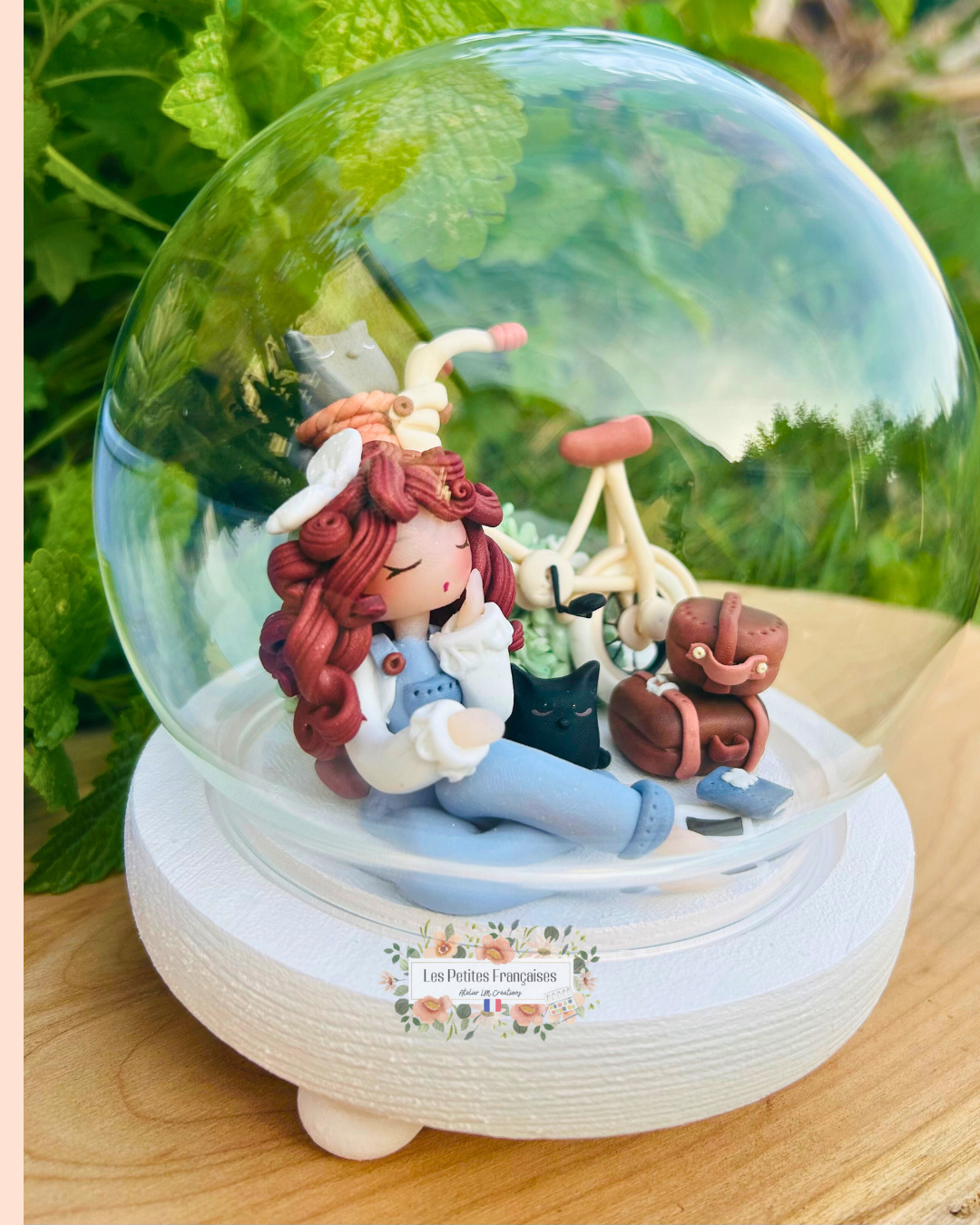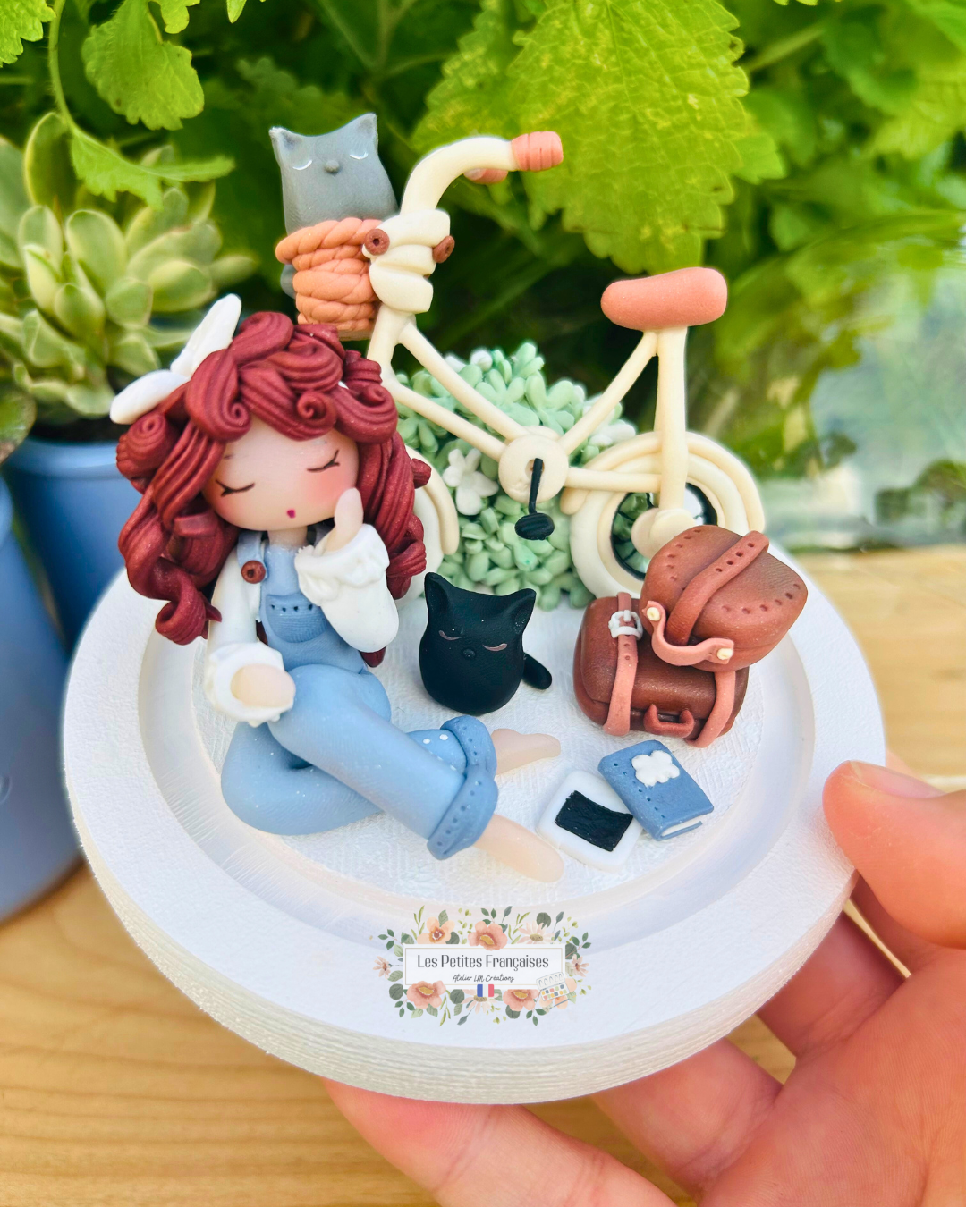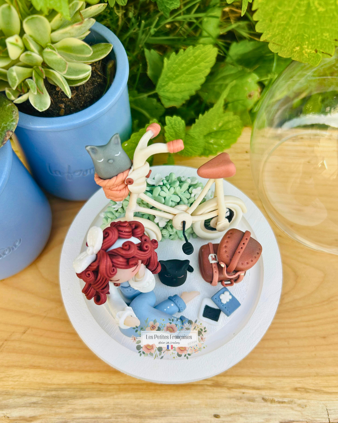Frédérique - Poupée et sa Bicyclette - Sculpture d'Art Unique
