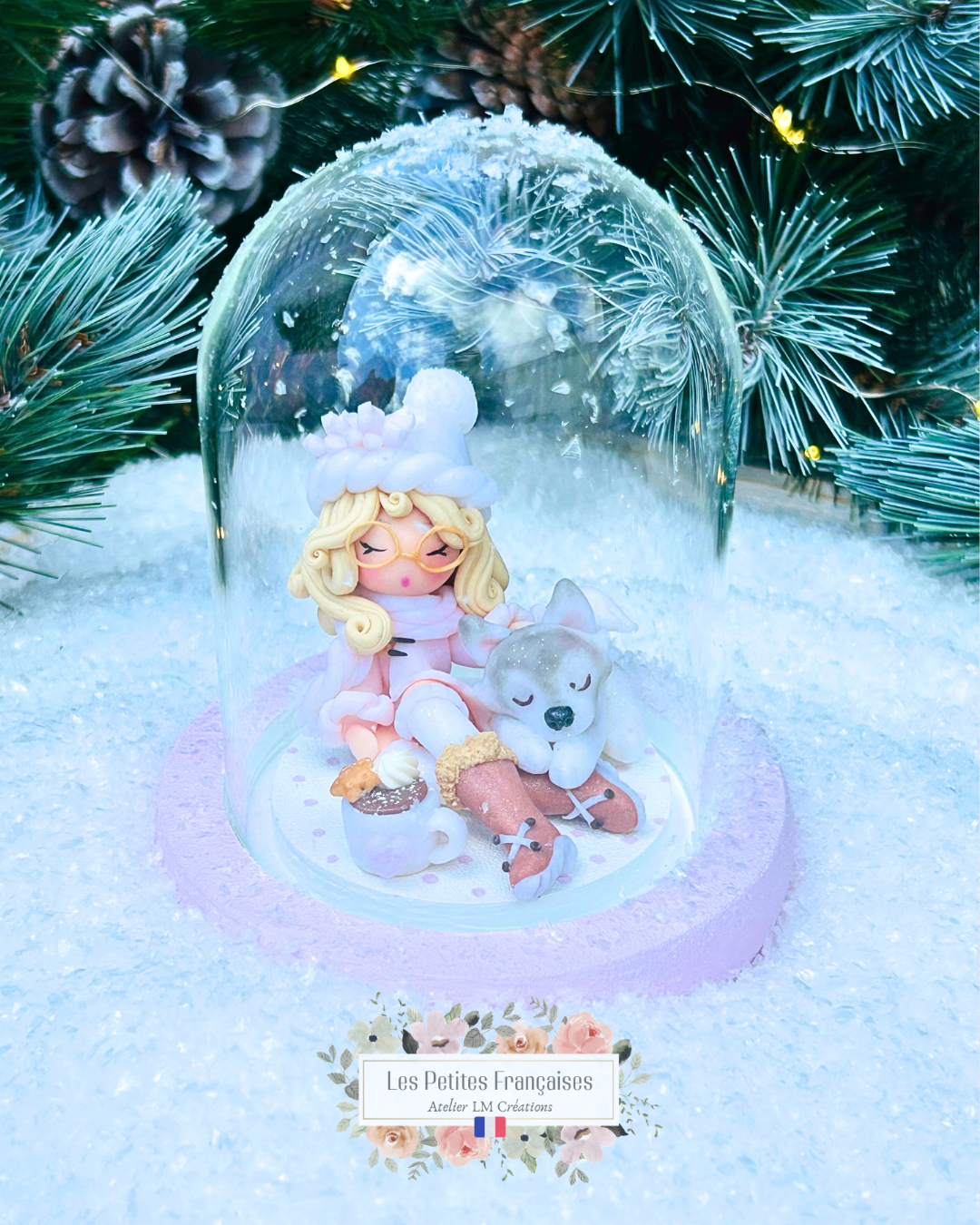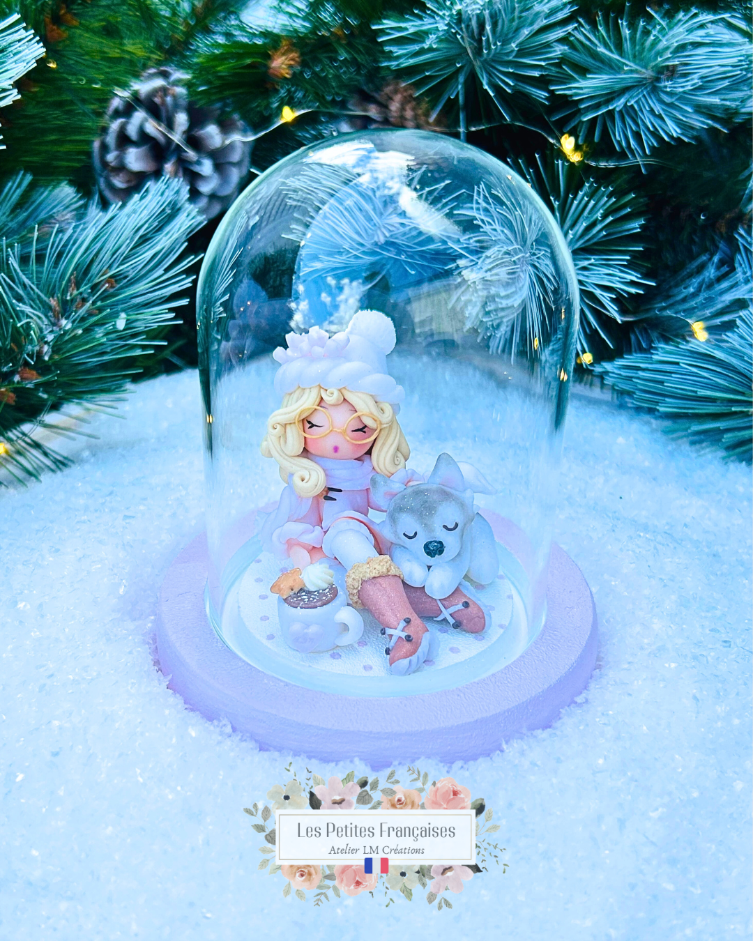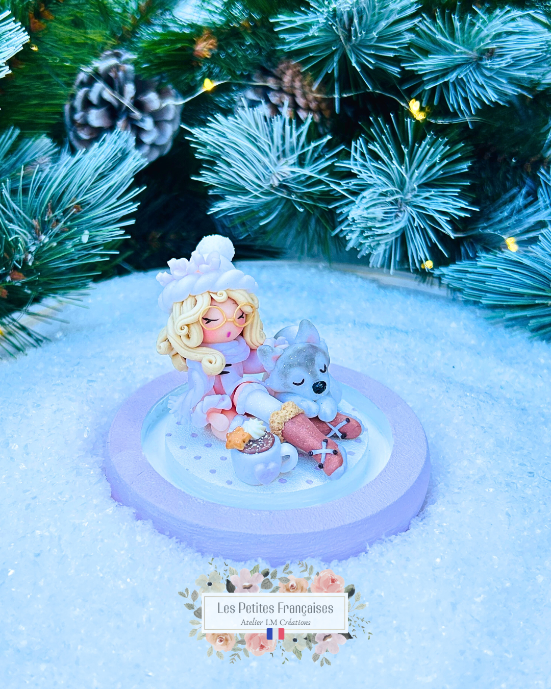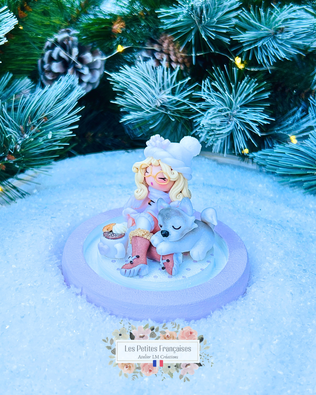 Création artisanale Française, pièce de collection unique, délicate poupée et son husky. A offrir ou collectionner.