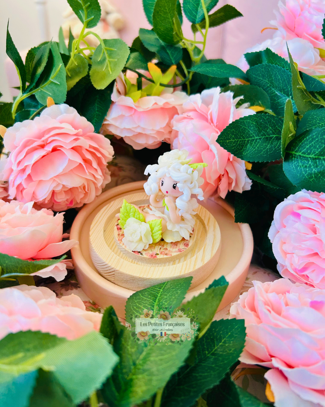 Avec sa robe blanche aux allures de pétales, ses cheveux délicatement poudrés et une petite fleur glissée dans sa chevelure, Léontine incarne la grâce et la discrétion. Elle appartient à la collection "La Vie en Rose", un hommage miniature aux teintes tendres et aux parfums fleuris.