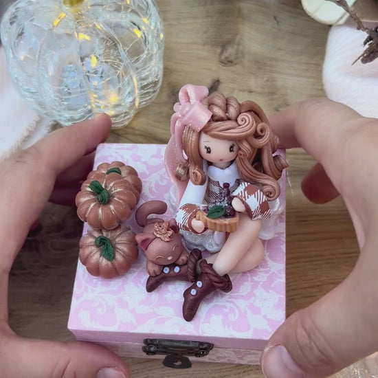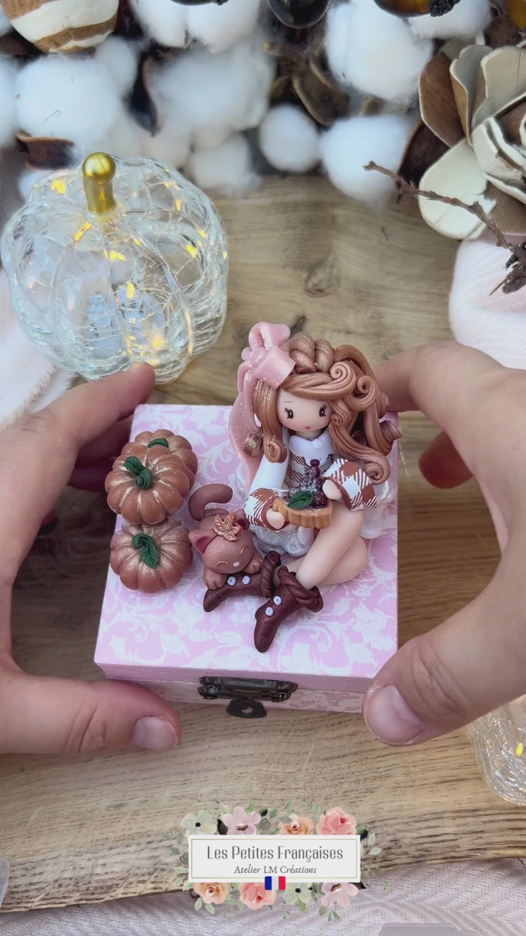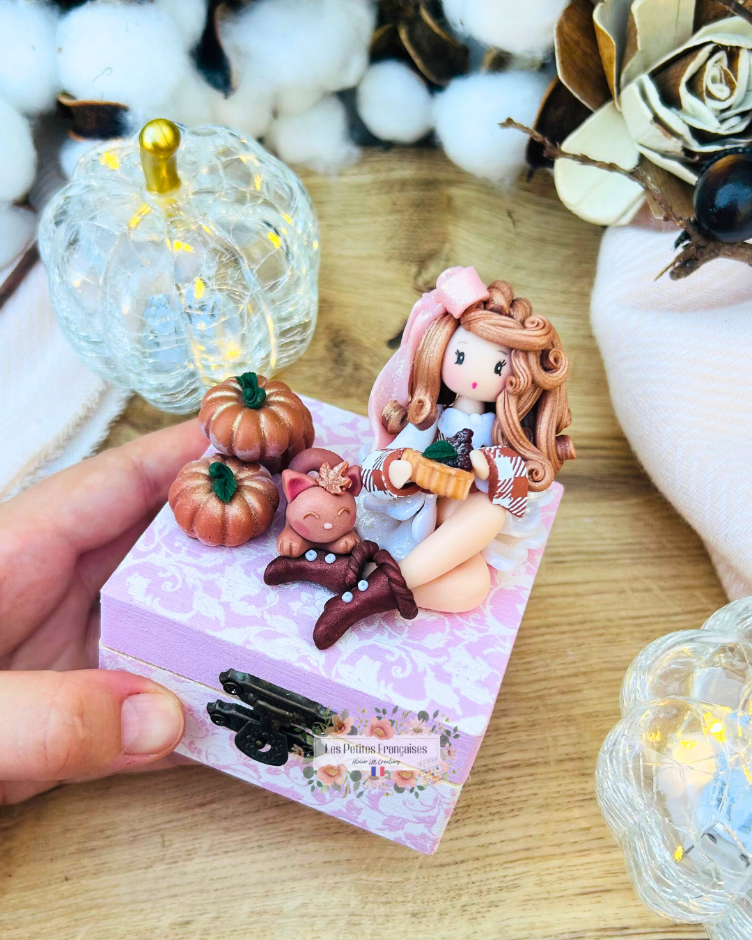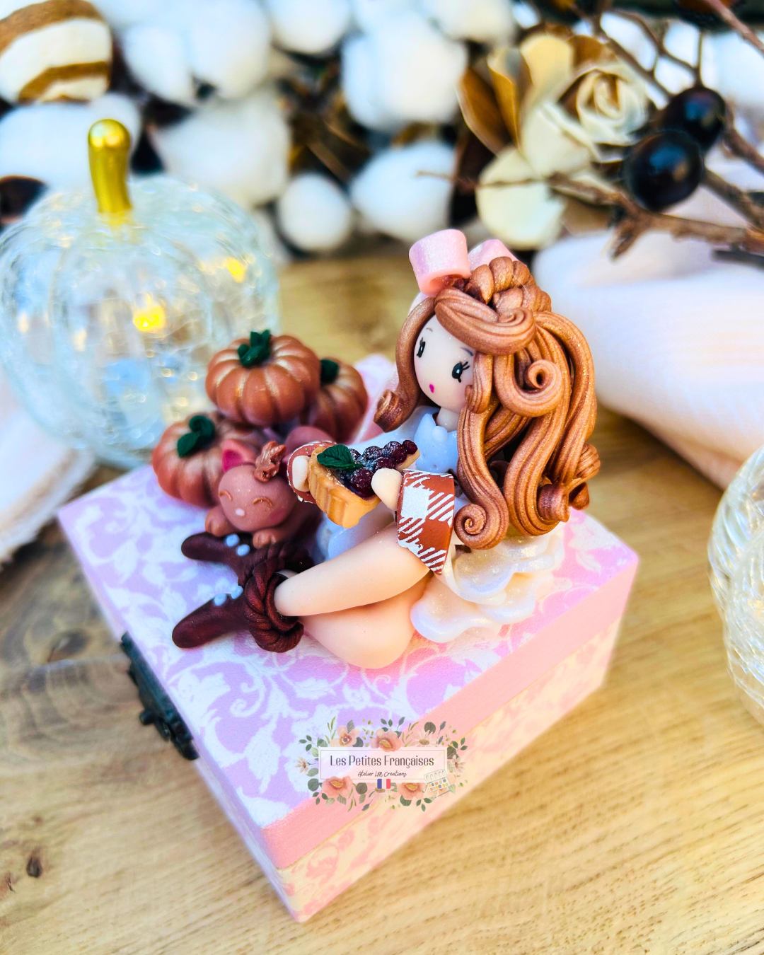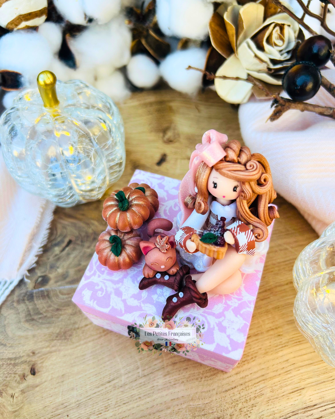 Création artisanale Française, pièce de collection unique, délicate poupée automne. Boite à offrir ou collectionner.