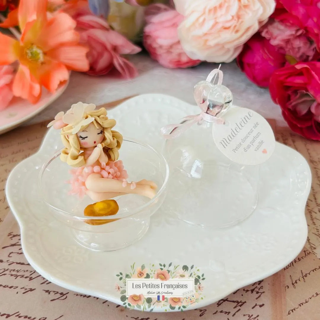 Création artisanale Française, pièce de collection unique, parfumée à la madeleine. Touche sucrée et décorative à offrir ou collectionner.