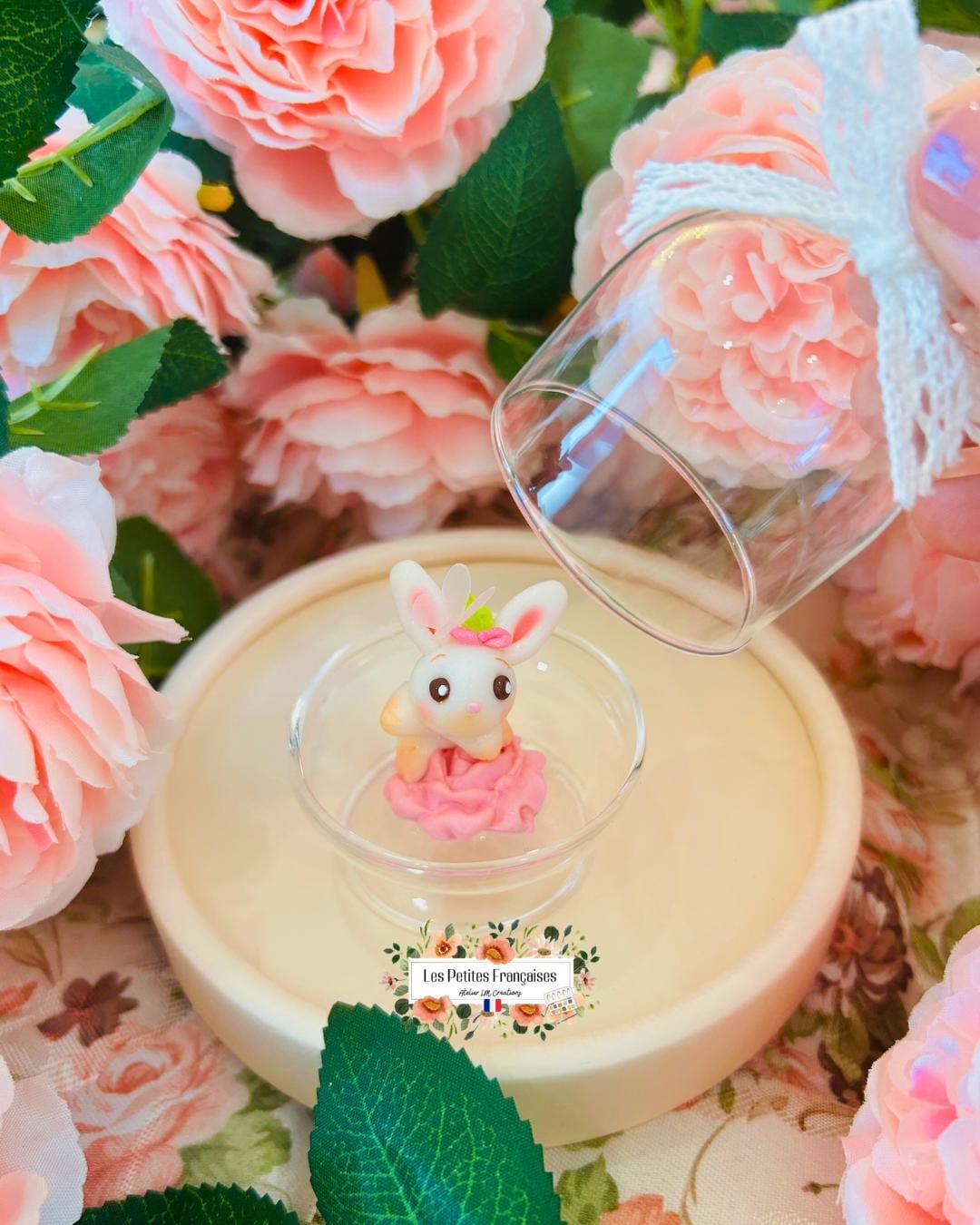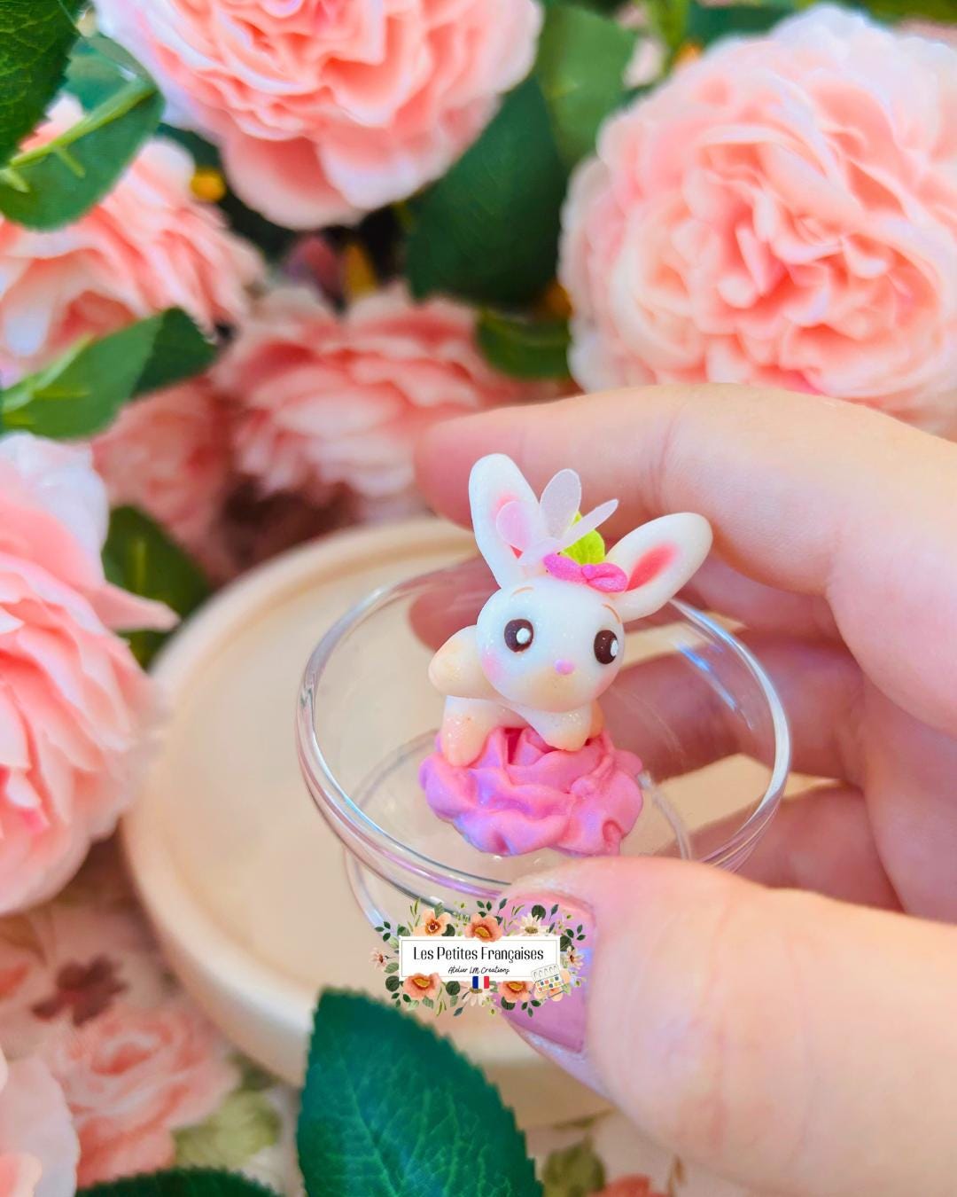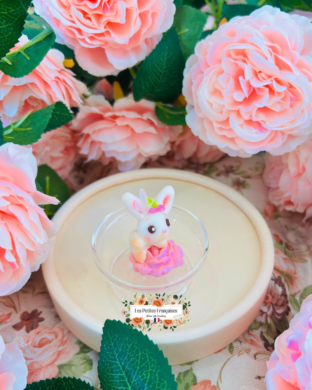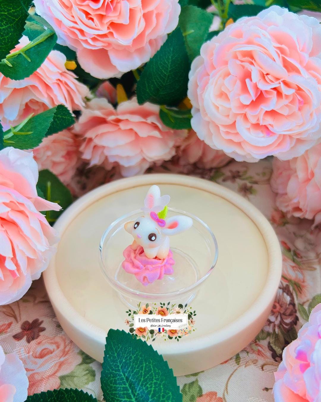 Création artisanale Française, pièce de collection unique, lapin blanc et sa rose. Touche florale et décorative à offrir ou collectionner.