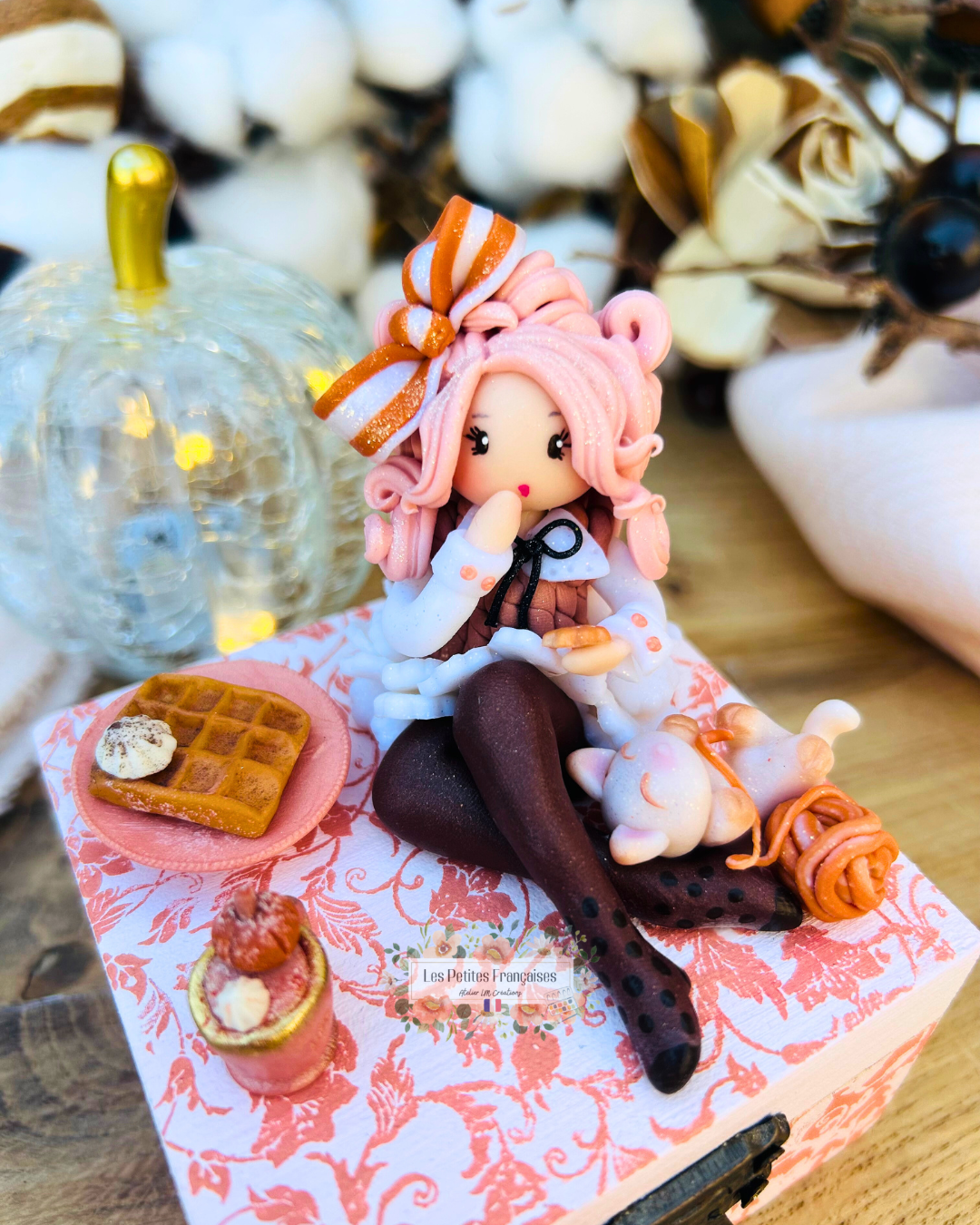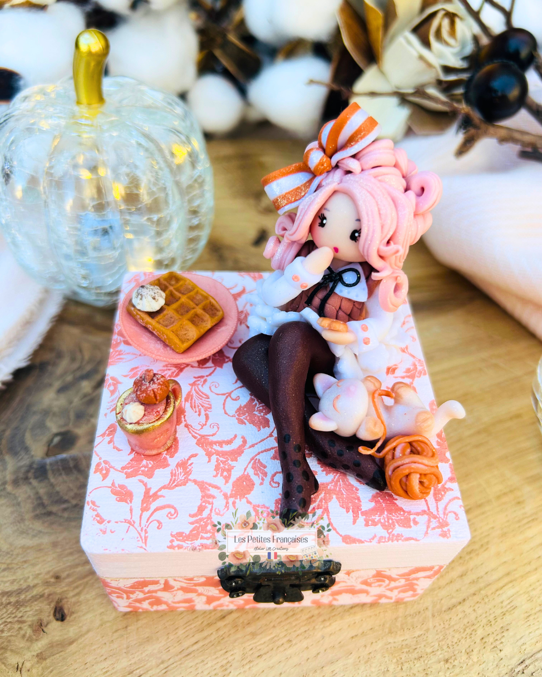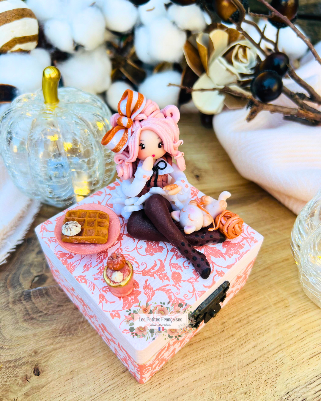 Création artisanale Française, pièce de collection unique, délicate poupée automne. Boite à offrir ou collectionner.