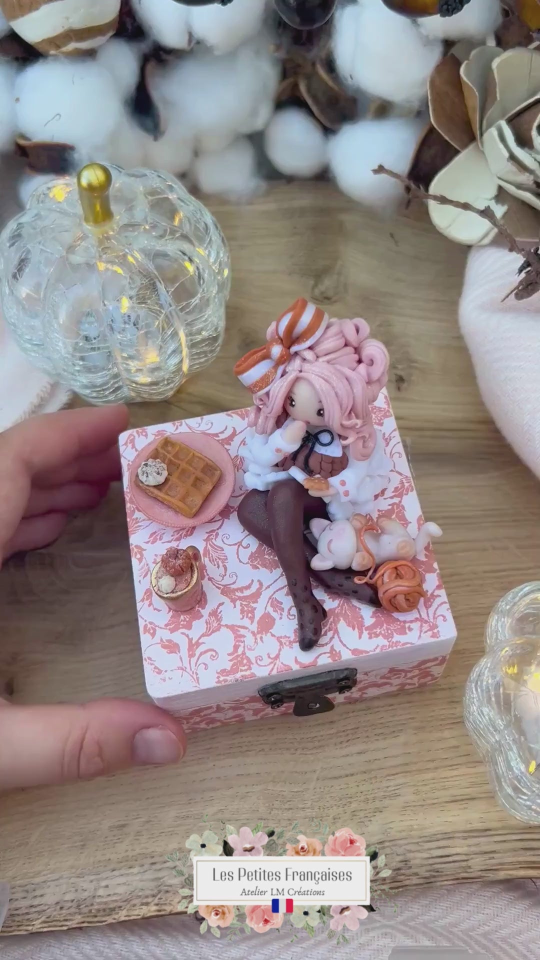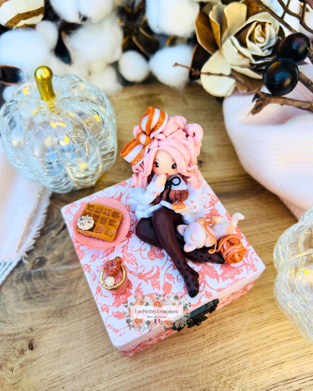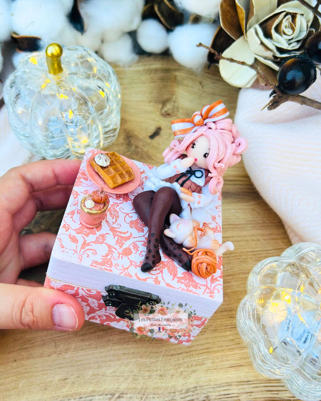 Création artisanale Française, pièce de collection unique, délicate poupée automne. Boite à offrir ou collectionner.